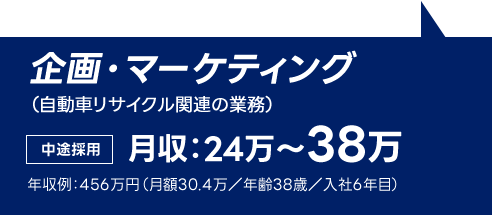 企画運営の仕事内容自社コンテンツである、「廃車王」を使った使用済自動車の仕入促進策やリサイクル部品の拡販策所属する経営企画部や他部門と連携しながら、新たな事業のプロモーション企画を提案します。提案後採用されれば、その後の管理も行います。自分の作った企画が実際にどんな動きをするか、インハウスで確かめることができます。